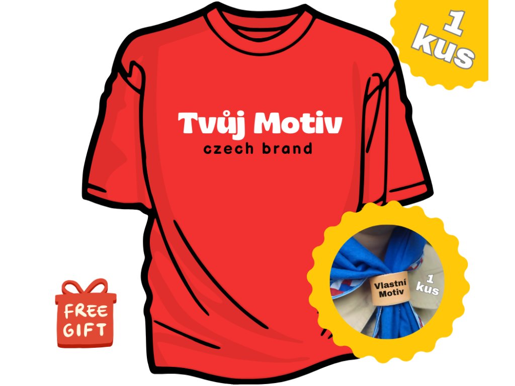 Červené tričko s vlastním motivem + malý kožený turbánek s vlastním motivem ZDARMA