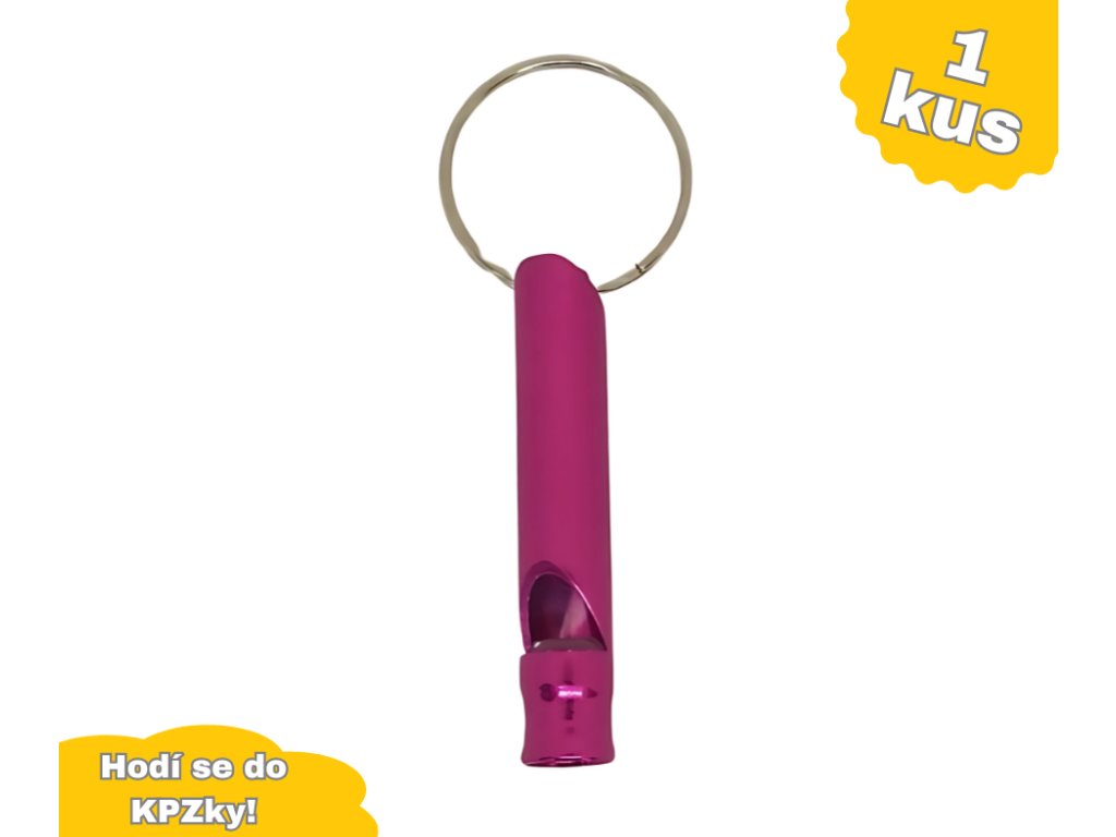 Malá kovová píšťalka s kroužkem - růžová.