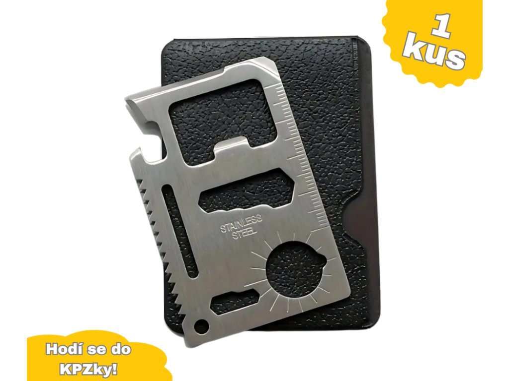 Každý skaut by mněl mýt vždy Krabičku Poslední Záchrany - za nás by tam rozhodně neměla chybět ani tato multifunkční karta která dokáže zastoupit řadu nástrojů (pravítko, šroubovák, klíč, nůž, pravítko, otvírák...)
