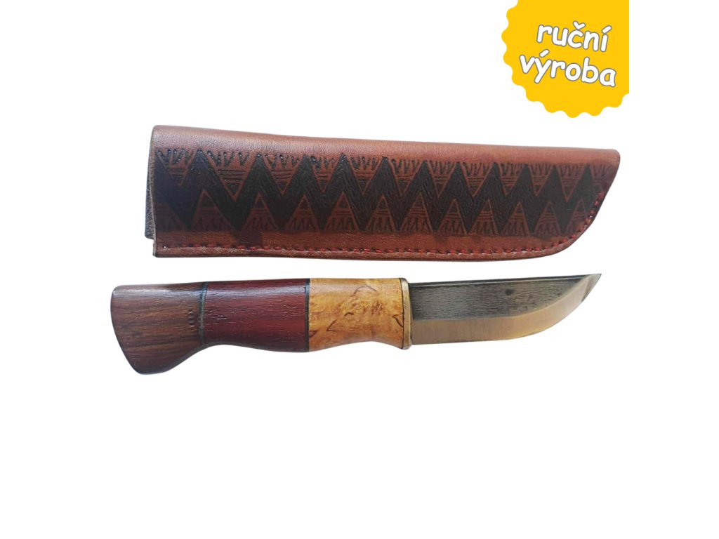 Nůž trojbarevný se zdobeným koženým pouzdrem