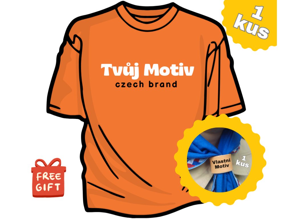 Oranžové tričko s vlastním motivem + malá kožený turbánek s vlastním motivem ZDARMA- volba velikosti