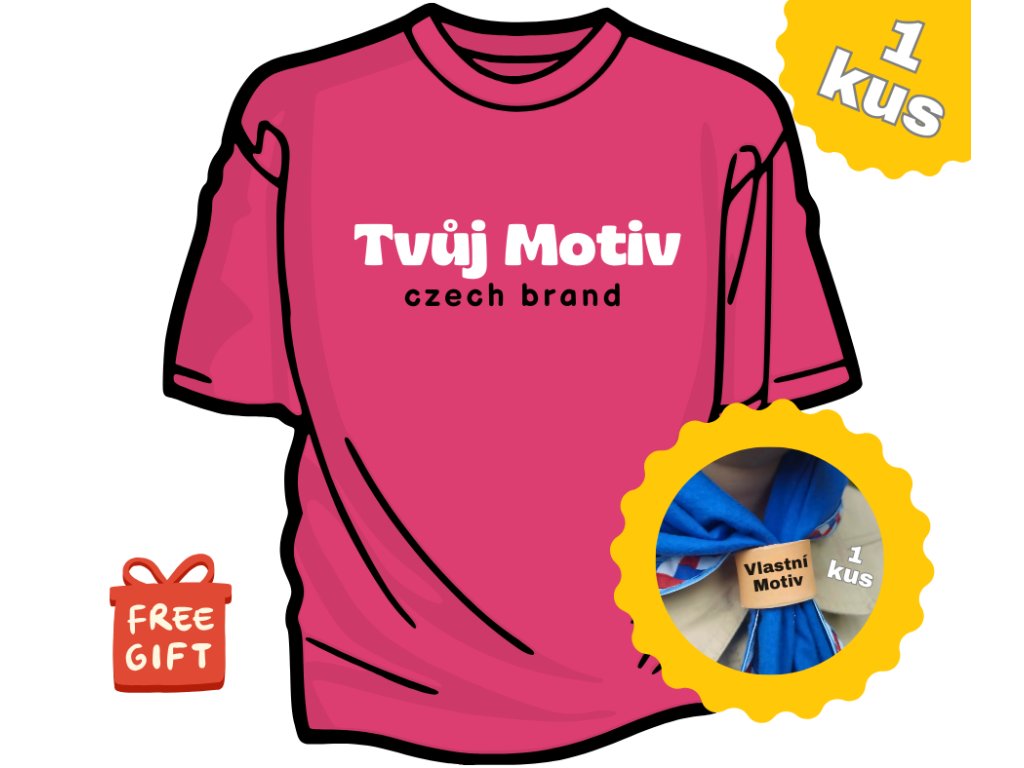 Růžové tričko s vlastním motivem + malá kožený turbánek s vlastním motivem ZDARMA- volba velikosti
